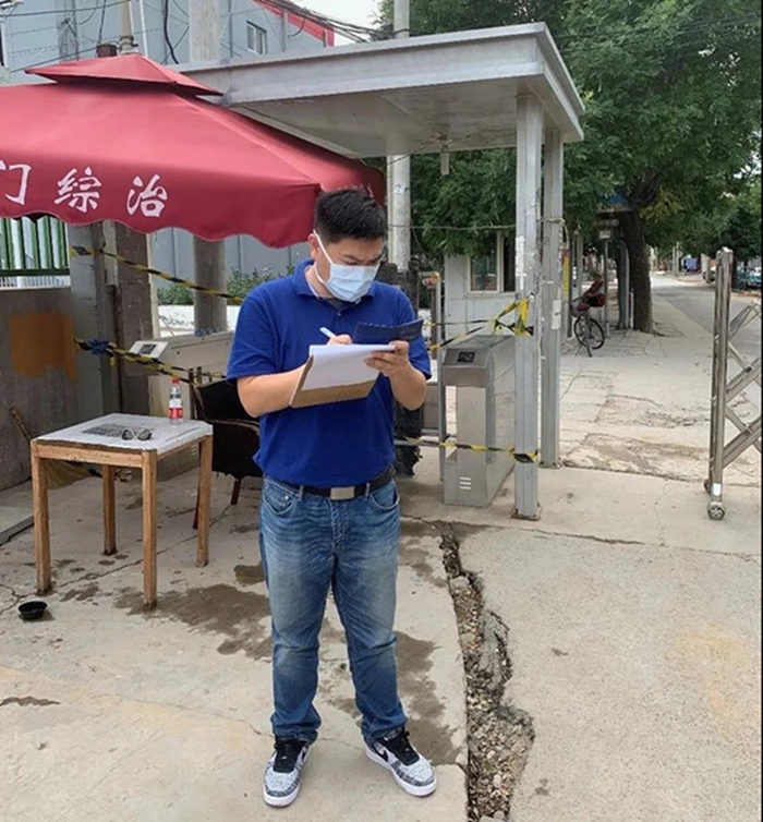 新发地批发市场是疫情的源发地,作为离此较近村子的下沉干部,我们勇挑抗疫重担。虽然是二次下沉,看似都是老工作,但责任与压力却与第一次不可同日而语。为了控制住疫情,我们跟随村委工作人员一起调整状态,认真摸底排查。在那最紧张的日子里,我和同事们几乎盯在卡口处,我们分工合作,测体温、登记、查验出入证……一天下来,真是腰酸背痛,但在我们的努力下,村民们自我防护意识不断增强,绝大部分村民都能主动配合我们的检查,我们的工作也轻松了许多。
