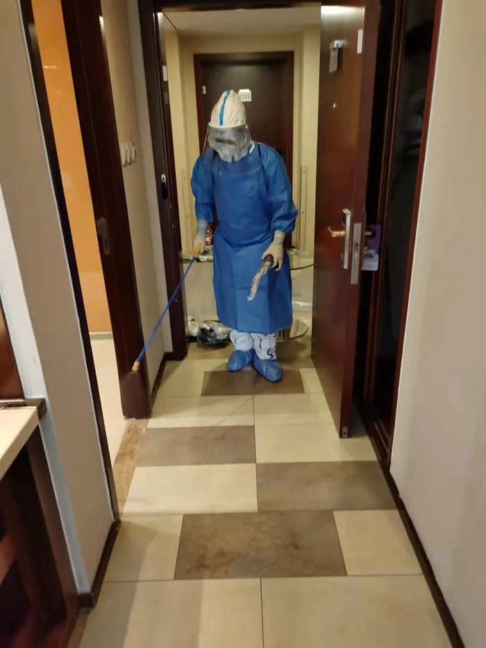 酒店负责人白江自隔离观察人员入住酒店那一刻开始,便坚守在岗位上,吃住在酒店,24小时在岗,直至最后一位集中隔离观察人员离开,酒店完成消杀后,他才拖着疲惫的身躯回到家中。现场工作人员安全平安、零感染,此次隔离观察任务圆满完成。