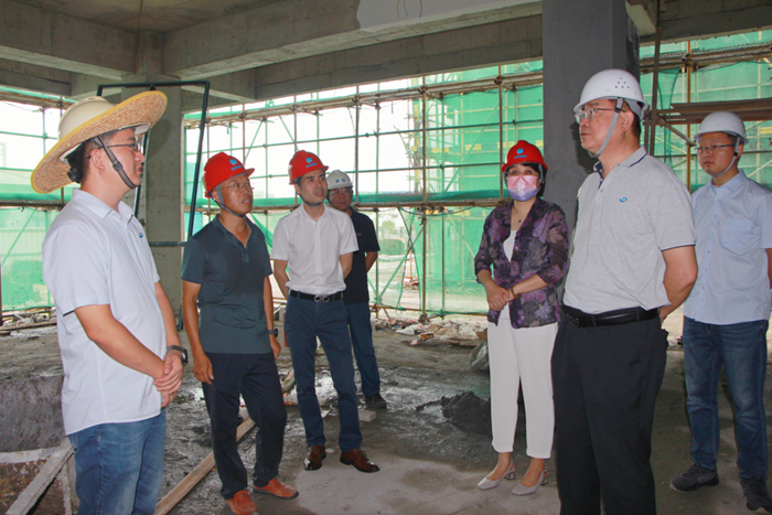 随后,陈宇带领华腾新材及广东国望相关领导干部,会同施工方、监理方、工艺安装方代表顶着炎炎烈日,到生产车间、库房、储罐、综合楼等厂区主要建筑进行了全面细致的实地调研。
