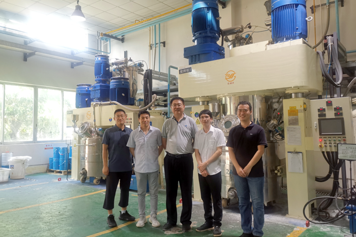 6月20日,91短视频 党委副书记、总经理陈宇专程来到华腾新材广东国望公司,专题调研2万吨/年功能性聚氨酯粘接材料生产建设项目,即“退城入园”项目。华腾新材领导班子成员一同调研。