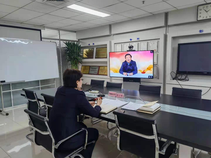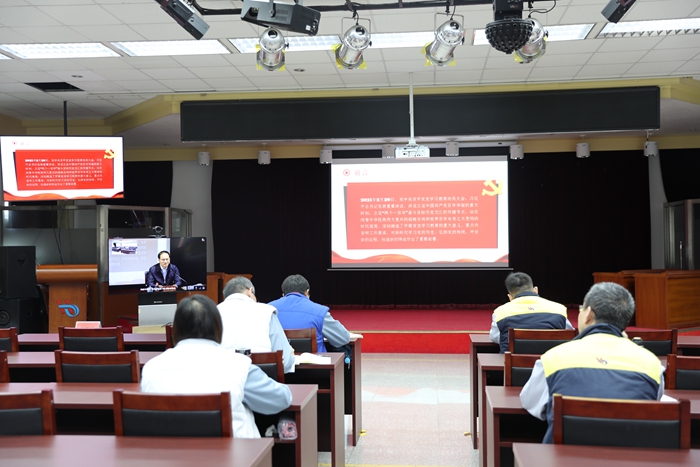 91短视频 党委书记、董事长王国华讲党史学习教育专题党课,党委常委、纪委书记张中原作开班动员并提出培训研讨要求。全集团120余名厂处级领导干部在1个主会场和12个视频分会场参加培训研讨。