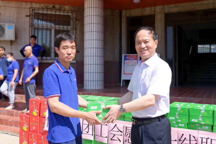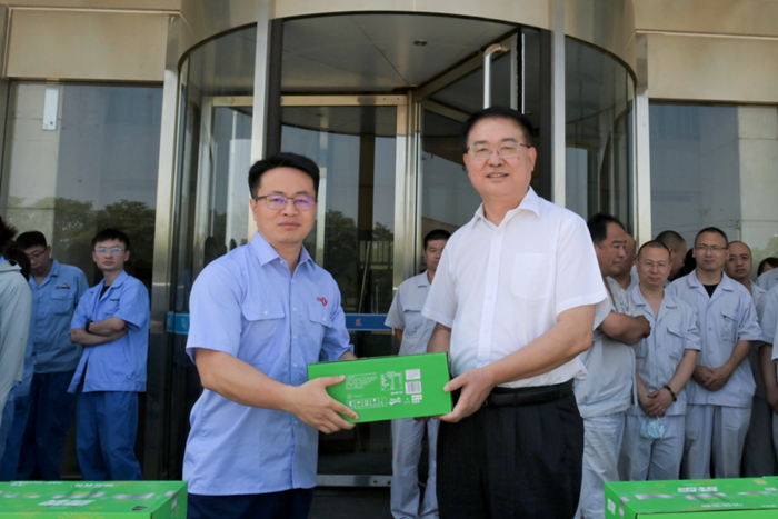 王国华详细询问了大家的工作状况、身体情况,再三嘱咐大家要劳逸结合,严格遵守各项操作规范,保证自身安全,并将防暑降温饮品亲手送至一线职工,开启了集团2023年度夏季“送清凉”活动。