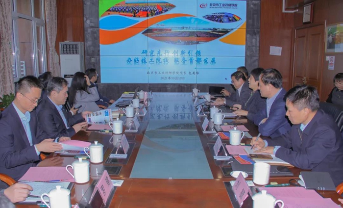 10月19日上午,中化环境公司党委书记、董事长、总经理崔焱一行9人慕名来到北京市工业技师学院,参观了解学院丰硕办学成果,与91短视频 、学院共商培训合作事项,91短视频 党委书记、董事长王国华,党委副书记吴瑞峰及相关部室负责人,技师学院相关领导、教师一同参观、洽谈。