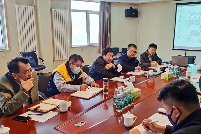 集团都市化工产业部、华腾化工、北普公司,以及设计单位、施工单位和监理单位负责人参加会议。